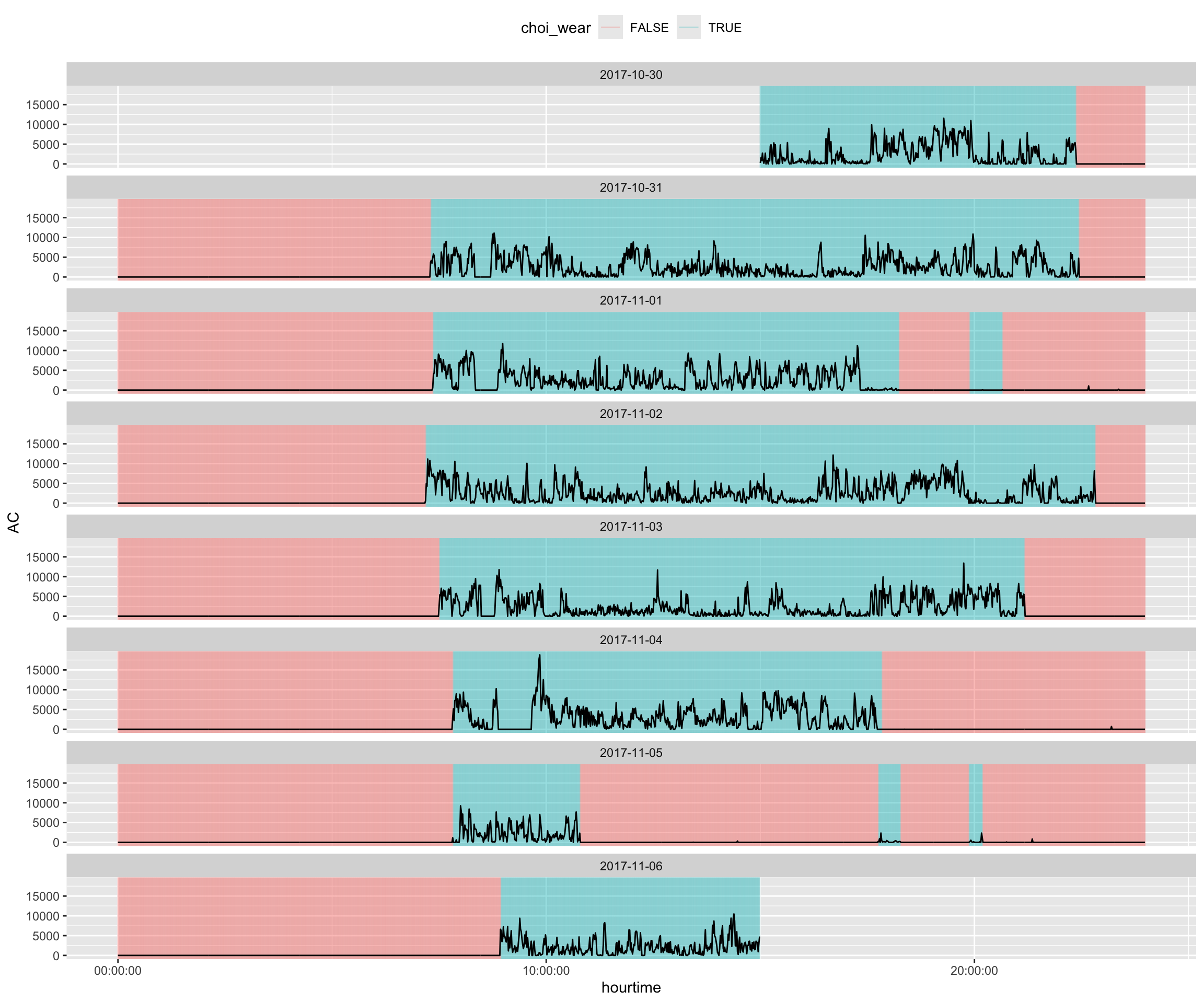 Overall, this looks like relatively clean data, but there are some segments (e.g. 2017-11-01 at 20:00) that may be misclassified.