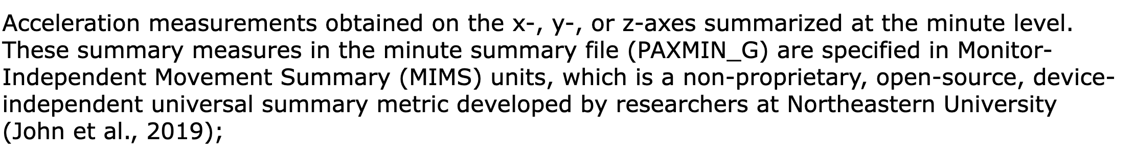 Monitor-independent movement summary for accelerometer data (John et al. 2019)