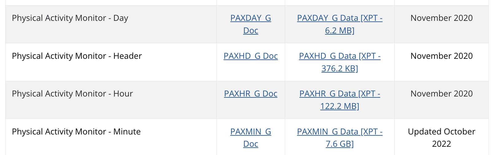 Physical Activity Data (under Examination Data)
