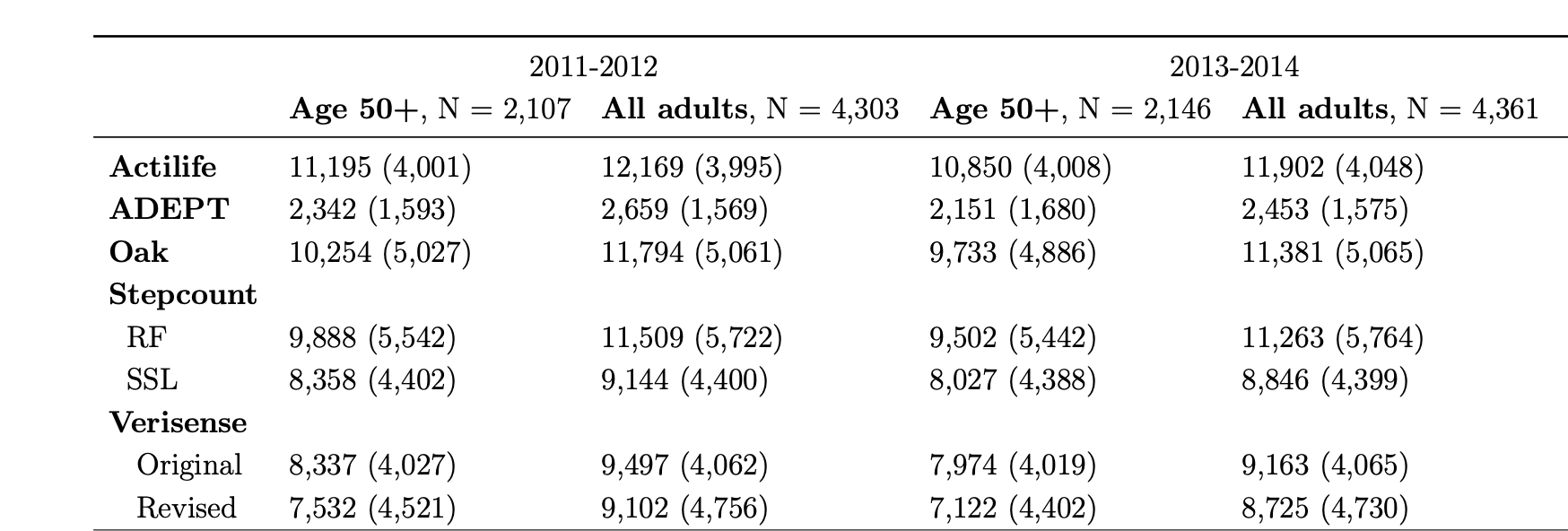 Lily Koffman and Muschelli (2024) estimates steps from 5 methods on this data: